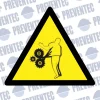 Señales de riesgo de aplastamiento con pictograma troquelado quedando sólo la forma triangular y en vinilo adhesivo.