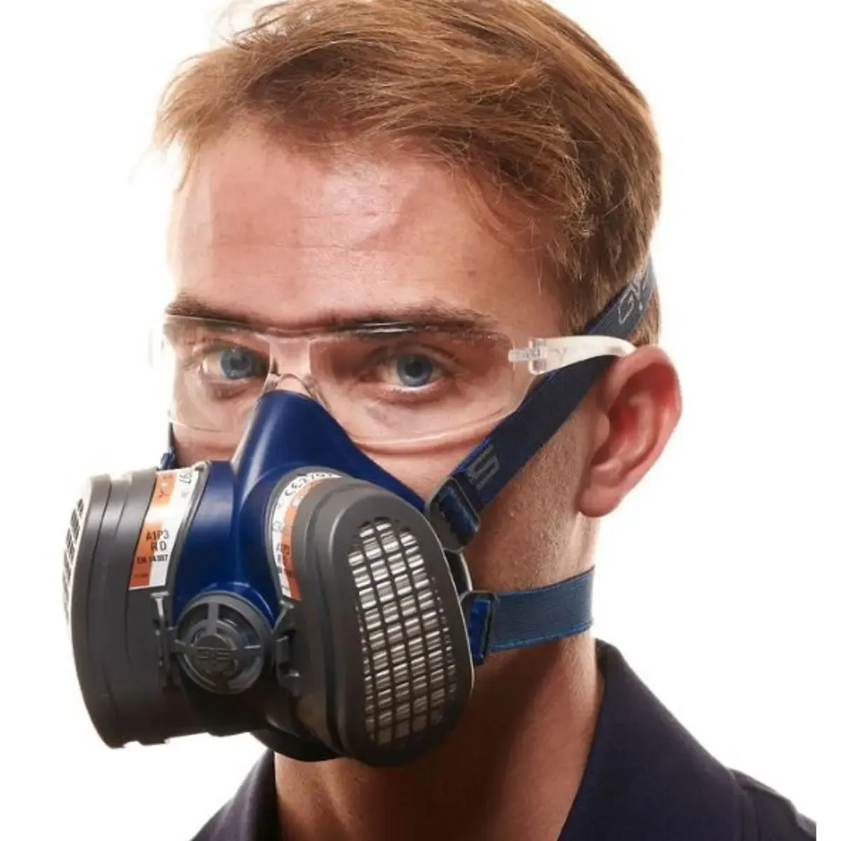 Su diseño compacto y ergonómico incorpora filtros A1P3 de alto rendimiento contra gases orgánicos, vapores y partículas. Eficaz frente a polvos, humos, nieblas y microorganismos, proporciona seguridad en entornos industriales, sanitarios y de alta contaminación..