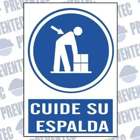 Señales de seguridad en el trabajo de obligación en la que nos obliga a tener cuidado en la realización de ciertas tareas y no forzar la espalda para que no se produzcan lesiones lumbares o de espalda.
