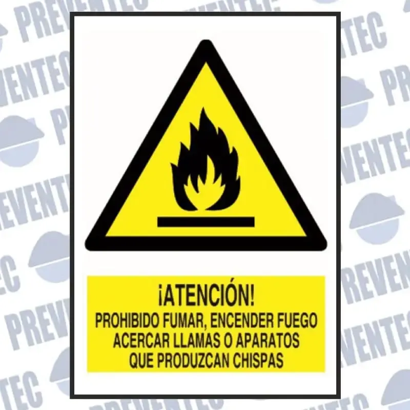 - Texto : ¡ Atención ! Prohibido fumar, encender fuego, acercar llamas o aparatos que produzcan chispas