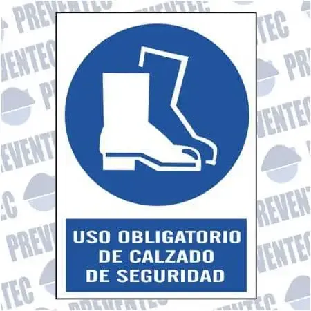 Señal uso obligatorio calzado seguridad fabricadas en PVC de 0,7 mm grosor y en tamaños DIN A4 y DIN A3