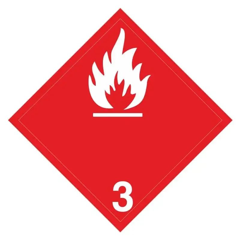 Estas etiquetas se instalan en un vehículo o contenedor y se usan en mercancías que pueden estar formadas por líquidos inflamables que por efecto del calor o de una llama pueden arder sus vapores.