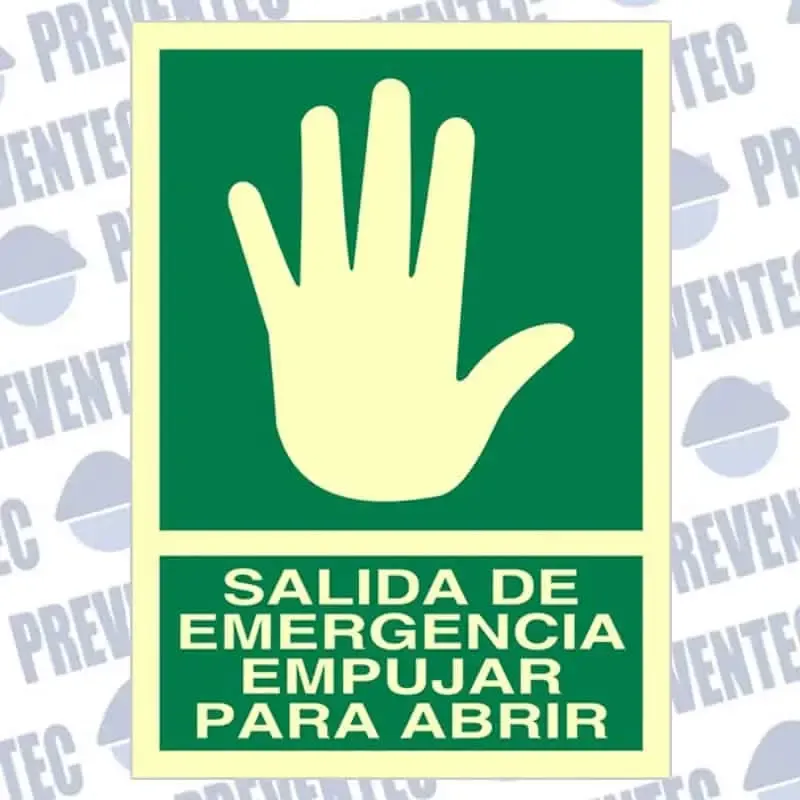 Esta señal nos informa que la puerta de salida de emergencia hay que empujar para abrir la puerta.