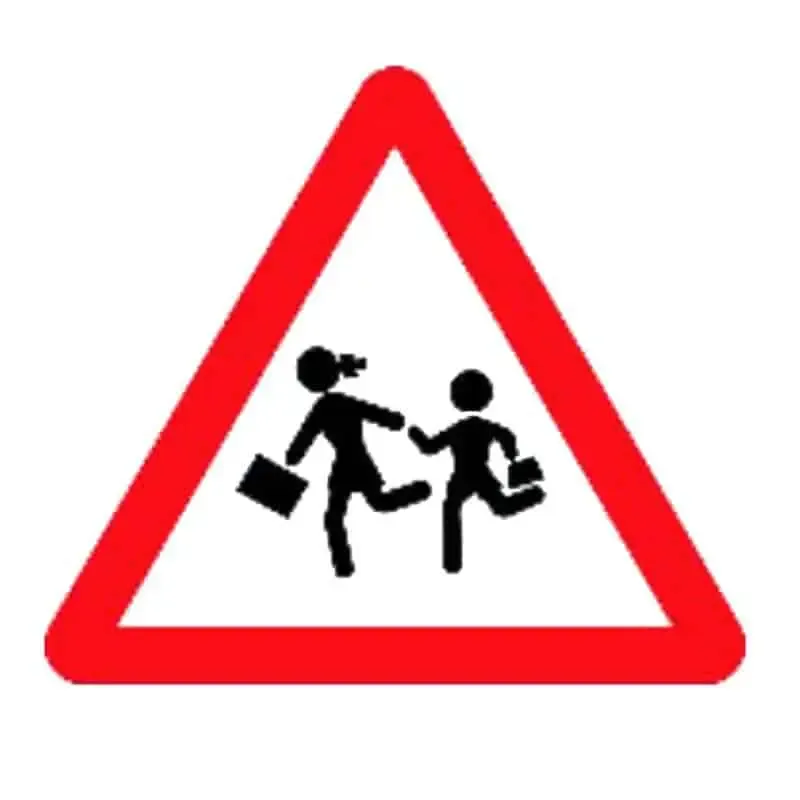Esta señal nos advierte del peligro ante la proximidad de un lugar frecuentado por niños, tales como escuelas, zonas de juegos, etc.