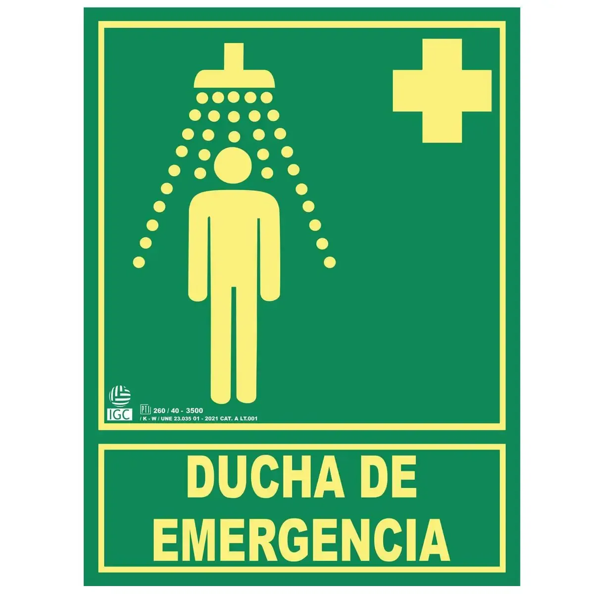 Señalización ducha de emergencia fabricadas en material PVC con material fotoluminiscente de CLASE A Y CLASE B con tamaño de DIN A4 o A2