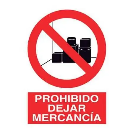 Esta señal de seguridad prohíbe dejar mercancías en la zona que esté instalada la señal ya que puede obstaculizar el trabajo o provocar un accidente.
