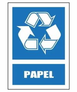 Cartel de material reciclado de chatarra para instalarse en contenedores, u otros espacios destinados a material para reciclar.