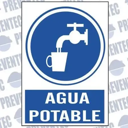 Señales de seguridad en el trabajo en el que nos informa de que el agua disponible es potable y se puede beber.