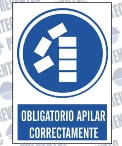 Señales de seguridad de obligación en el que se informa a los operarios de que es obligado apilar cajas correctamente para evitar accidentes provocadas por caída de cajas o obstrucciones que dificulten el trabajo.