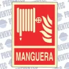Esta señal de socorro nos indica la dirección ( hacia la izquierda ) en donde está ubicada una manguera para incendios para ser utilizada en caso de emergencia. Las mangueras sirven para transportar agua desde el punto inicial hasta el lugar en donde está el fuego.