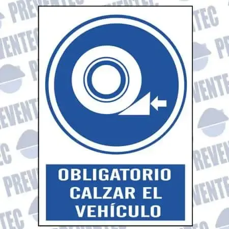 Señales de uso obligatorio calzar el vehículo fabricadas en PVC de 0,7 mm grosor y en tamaños DIN A4 y DIN A3