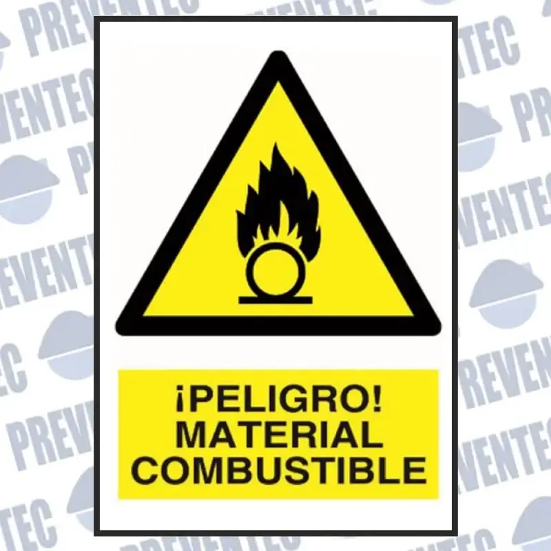 Señales de seguridad que nos advierte de que tratamos con material combustible que puede arder.