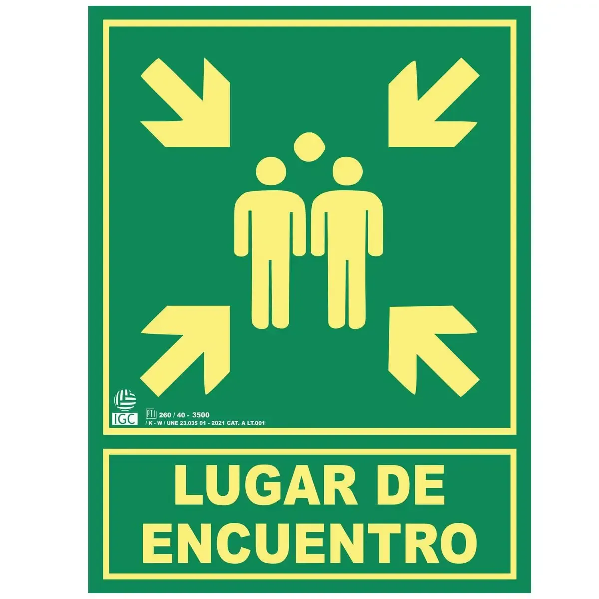 Señales de seguridad punto de encuentro o reunión fabricadas en material PVC con material fotoluminiscente de CLASE A Y CLASE B con tamaño de DIN A4 o A2