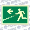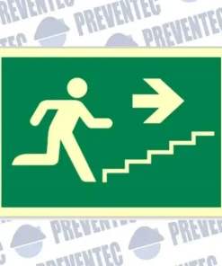 Esta señal nos informa que en caso de emergencia y tener que evacuar un local, cuando crucemos una puerta tenemos que tomar la dirección hacia abajo.