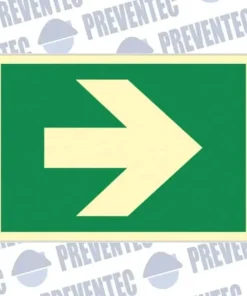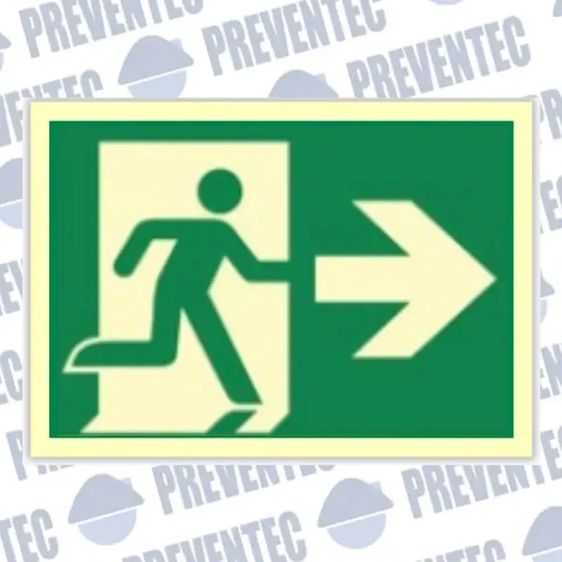 Esta señal nos informa que en caso de emergencia y tener que evacuar un local, cuando crucemos una puerta tenemos que tomar la dirección a la derecha.