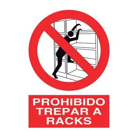 Los racks son las estructuras metálicas que sirven para almacenar las mercancías. Esta señal nos recuerda que no se puede subir o trepar por ellas.