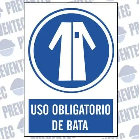 Señales de seguridad que nos indica la obligación de llevar puesto una bata, bien sea de tela o desechable.