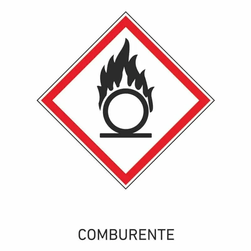 Señal comburente conforme según reglamento CLP CE 1272/2008 que están armonizadas con los criterios del Sistema Globalmente Armonizado (SGA) de las Naciones Unidas sobre clasificación, etiquetado y envasado de sustancias y mezclas químicas.