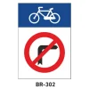 Señal para ciclo-ruta BP-17 de estrechamiento de la calzada con un diseño homologado y que indican las normas de tráfico que deben cumplir los ciclistas.