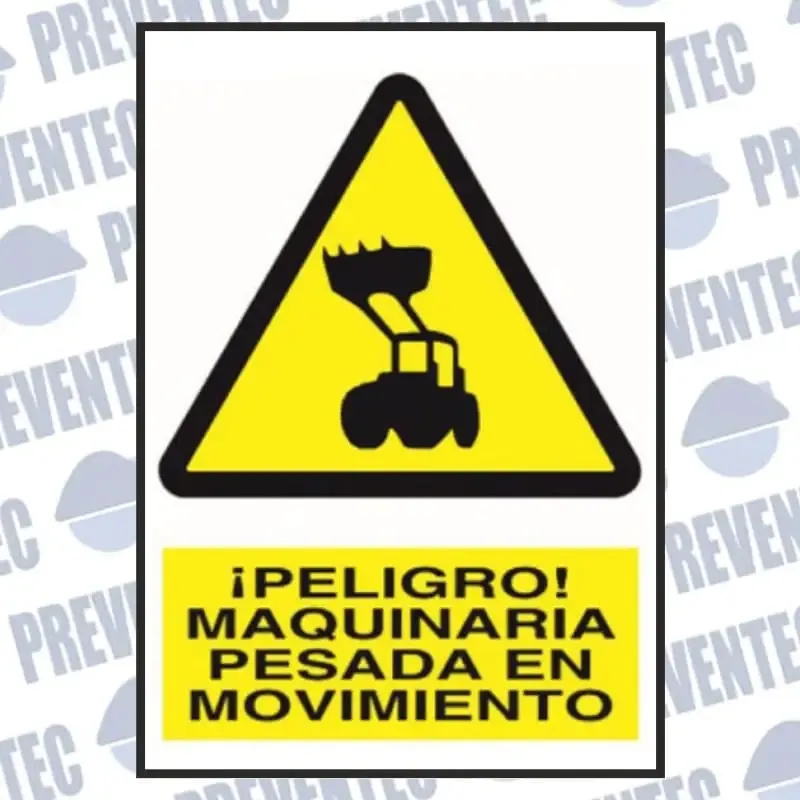 Señalización de maquinaria pesada en movimiento en PVC y medidas DIN A3 y DIN A4.