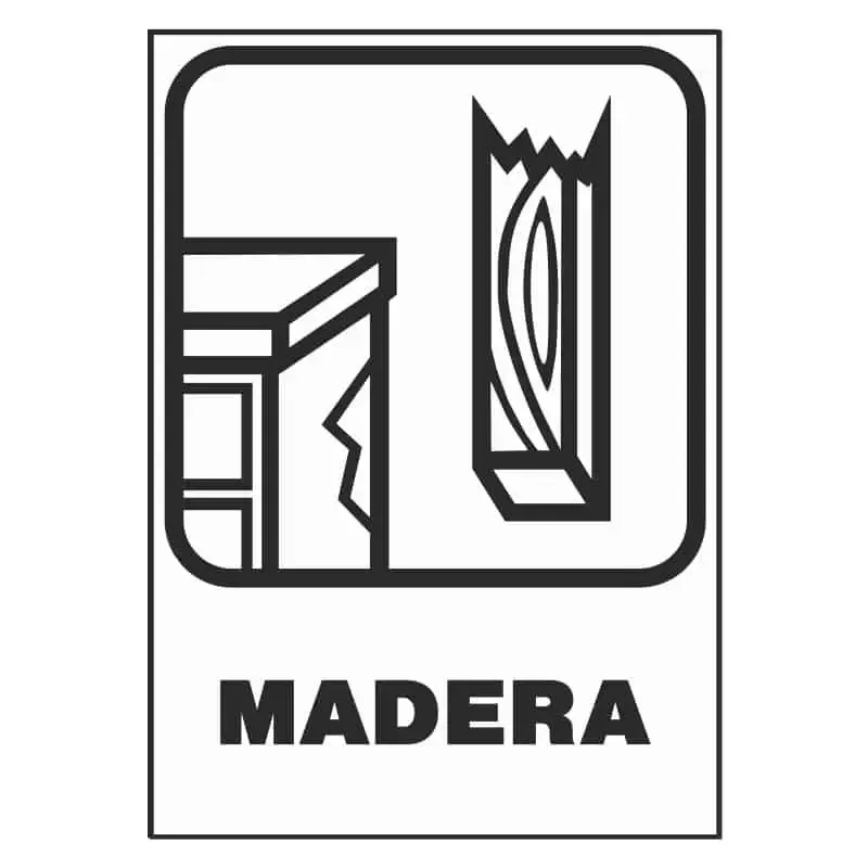 Cartel reciclado de madera para instalarse en contenedores, u otros espacios destinados a material para reciclar.