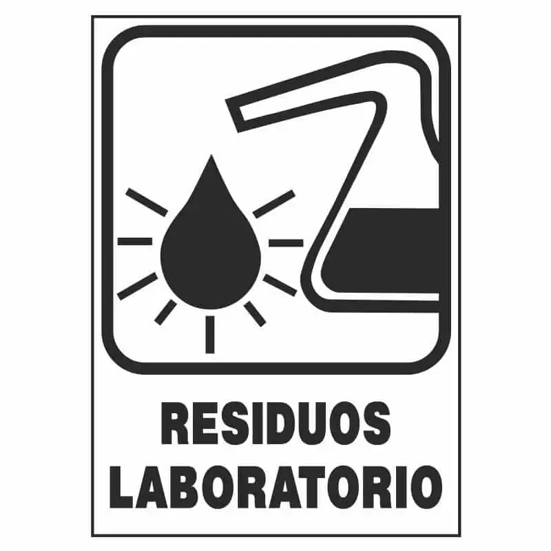 Cartel reciclaje residuos laboratorio para instalarse en contenedores, basureros, papeleras u otros lugares destinados al reciclado.