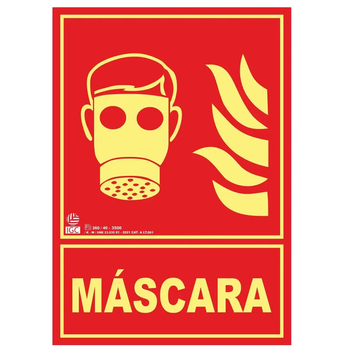 Señal contra incendios máscara fabricada en material PVC con material fotoluminiscente de CLASE A y CLASE B con tamaño de DIN A4 o A2