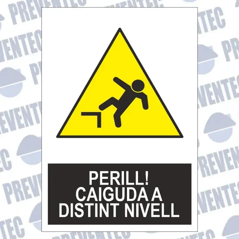 Senyal perill caiguda a distint nivell fabricades en PVC de 1 mm gruix o en vinil adhesiu amb diverses grandàries.
