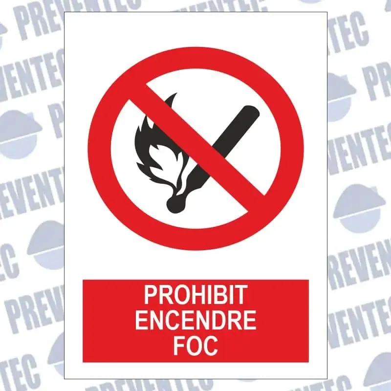 Senyal prohibit encendre fot fabricades en PVC de 1 mm gruix i en grandàries DIN A4 i DIN A3