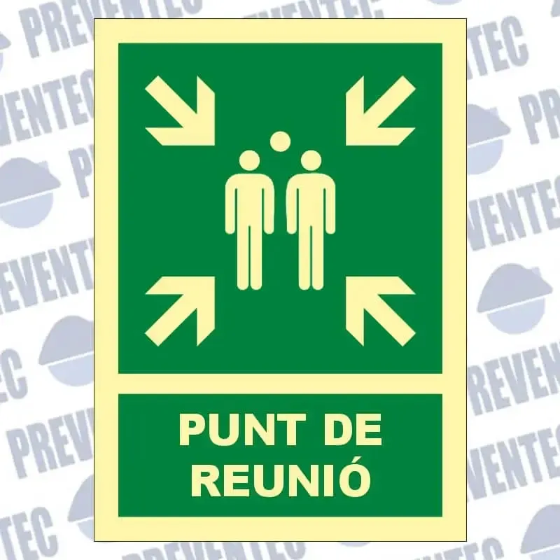 Senyal punt de reunió fabricades en material PVC amb material fotoluminiscent de CLASSE B i en grandària DIN A4