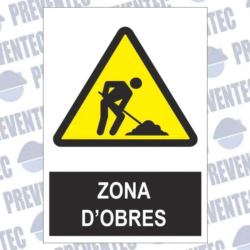 Senyal zona d’obres fabricades en PVC de 1 mm gruix o en vinil adhesiu amb diverses grandàries.