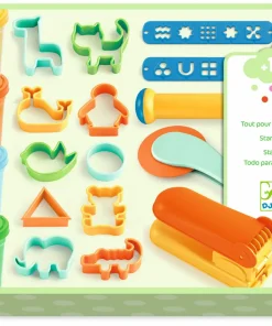 Este estuche de Djeco trae todas las herramientas necesarias para las primeras actividades manuales de modelado. Un ejercicio estupendo para desarrollar, de manera divertida, la motricidad fina, estimular la imaginación, creatividad y el sentido del tacto. También ejercitaremos el reconocimiento de colores y formas y los músculos de las manos, esenciales para la escritura.