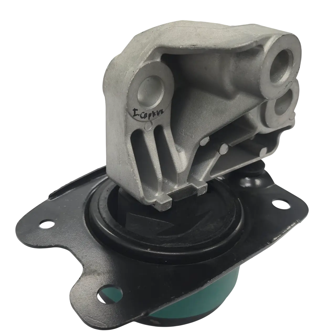 El soporte motor izquierdo / caja Chevrolet Captiva 3.2 es una pieza de caucho vulcanizada a una base de hierro o aluminio que tiene como principal función sostener el motor y la transmisión al chasis del carro.