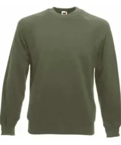 Sudadera de trabajo de la marca Fruit of the Loom fabricada en tejido felpa con diseño ranglan en los hombros.