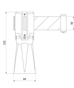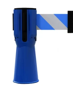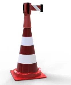 Tensacone con cinta separadora extensible de 3 metros en blanco y rojo para unirse a otro tensacone y formar una barrera de acceso.