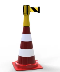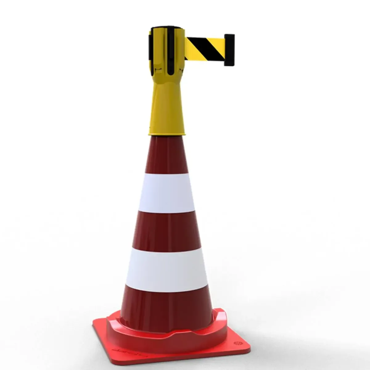 Tensacone con cinta amarilla y negra extensible hasta 3 metros para instalarse en conos de tráfico e ideales para formar una delimitación.