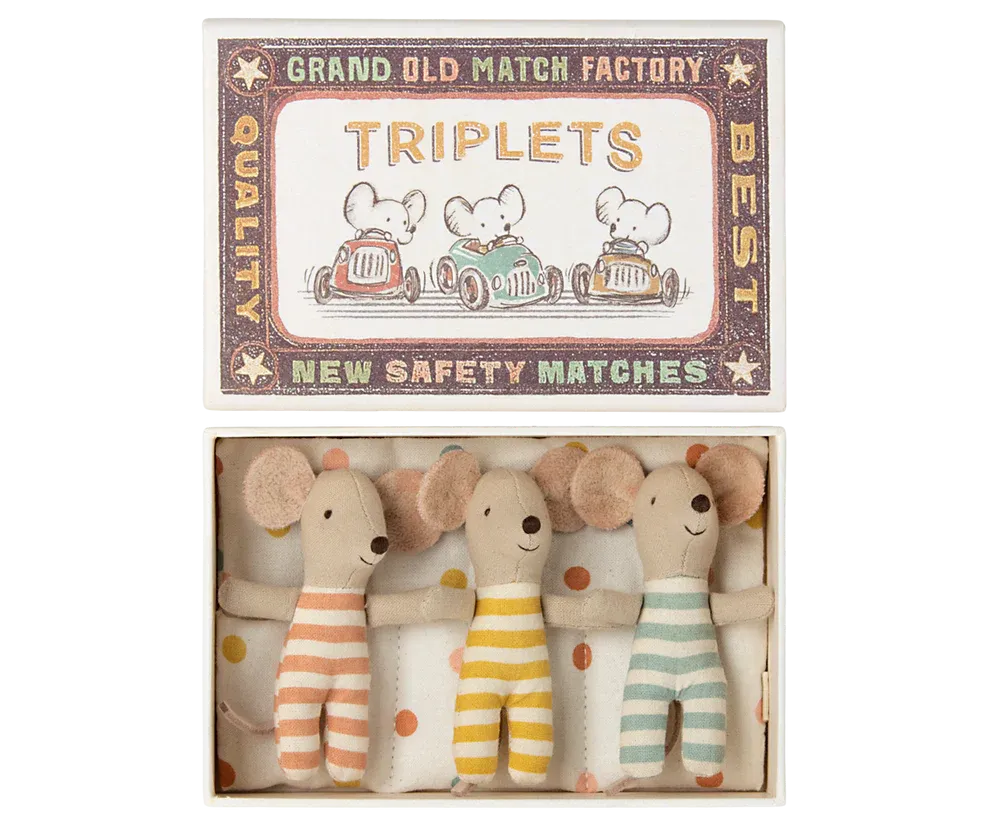 Trillizos Ratones bebés en caja de cerillas Maileg