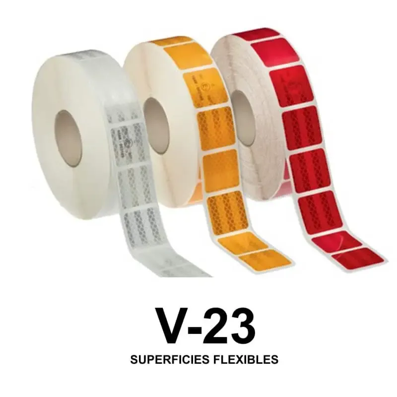 La señal V-23 es un marcaje reflectante para vehículos de gran tamaño que se ubica en el contorno del vehículo.