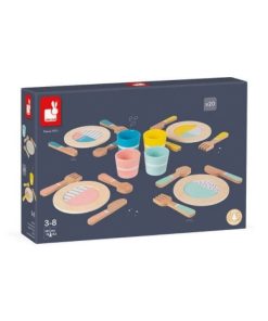 Contenido: 20 piezas para 4 personas: 4 platos, 4 vasos y 4 pares de cubiertos (cuchillo, tenedor y cuchara).