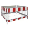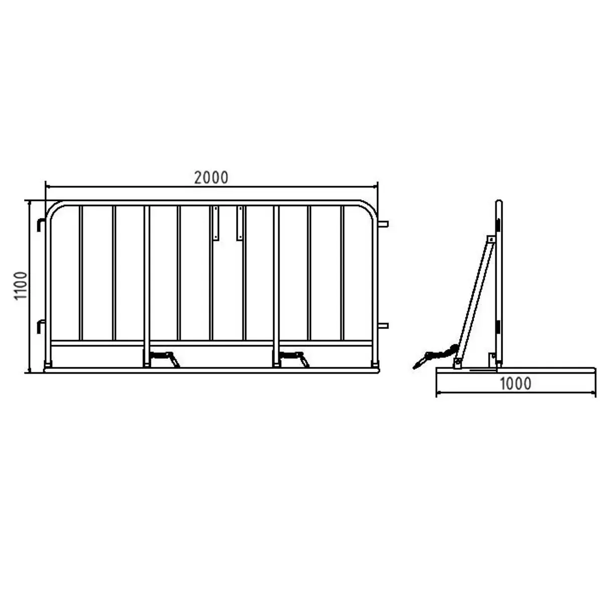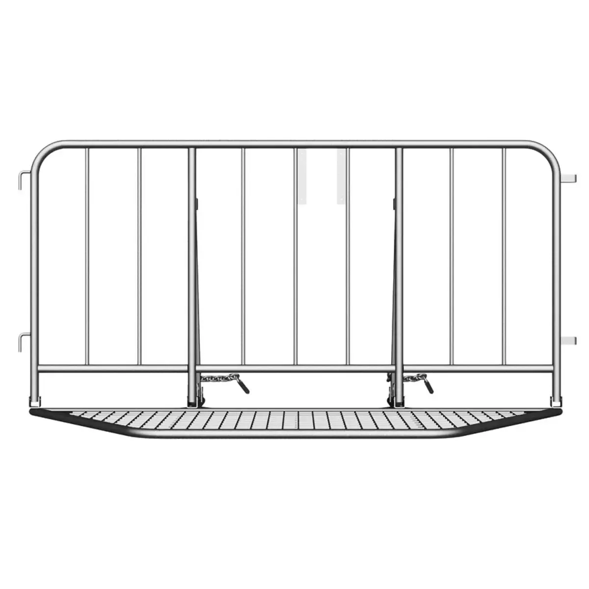 - Ganchos y estribos de conexión soldados en el lateral del marco que permiten conectar con otra valla.