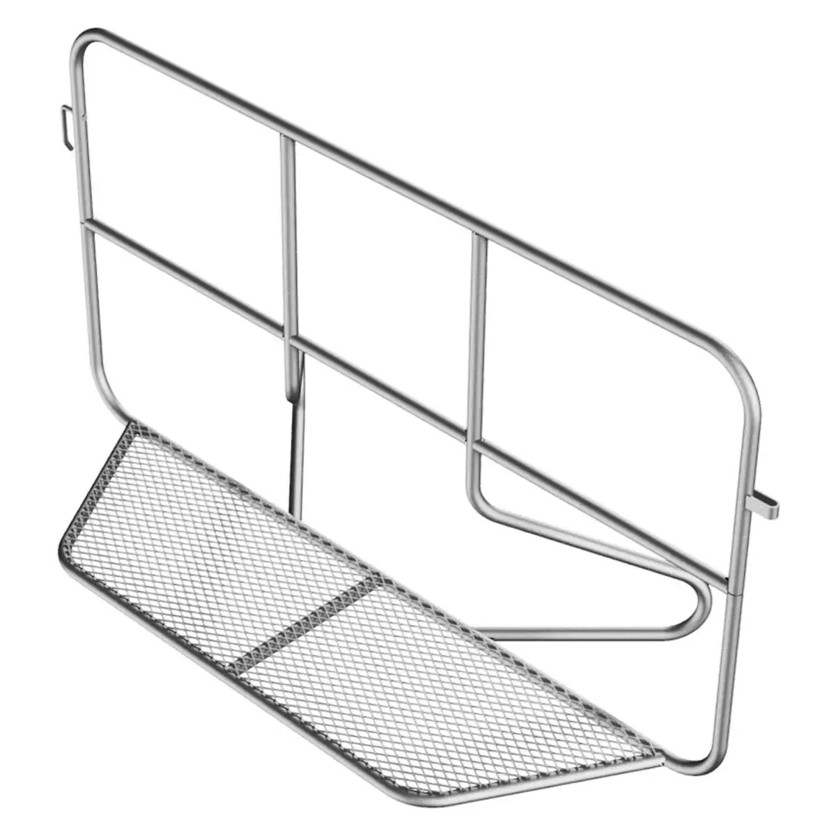 - Un gancho en un lateral y un estribo en el otro que permiten unir otra valla.