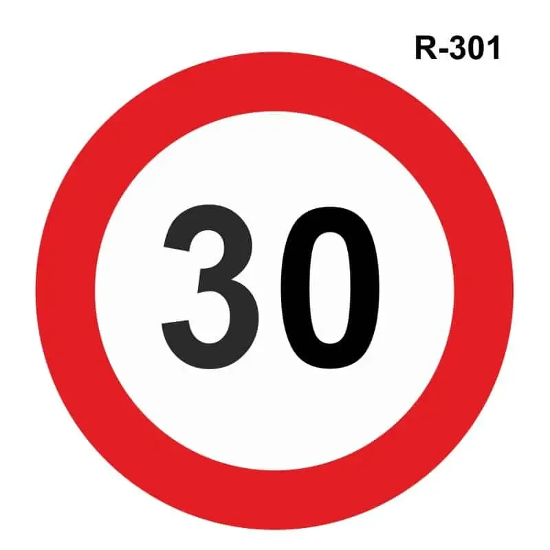 Señal tráfico R-301 con opción a elegir homologada MOPU o económicas de prohibición de velocidad máxima 30 km/h.
