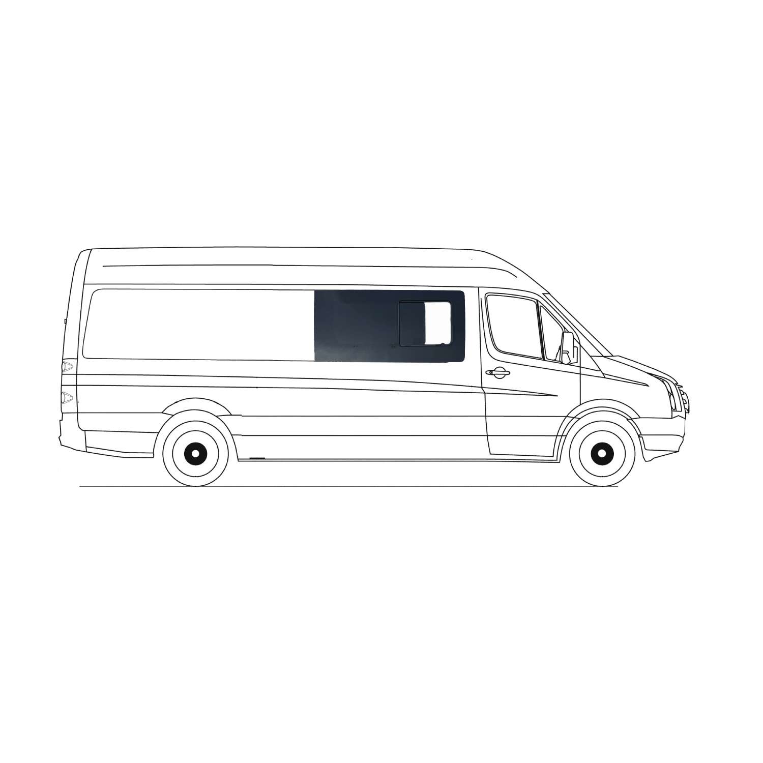 Esta ventana de cristal es apta para Man TGE y Volkswagen Crafter 2017-2025 y se suministra tintada.