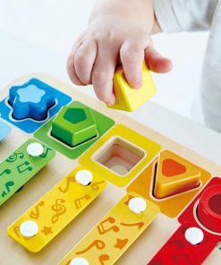 Un completo xilófono multicolor que permite tocar música y clasificar formas simultáneamente.