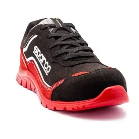 Llamativo diseño en color rojo que pertenece a la línea Sparco Nitro al igual que los modelos Sparco Nitro Didier en gris o Sparco Petter azul y comparte el mismo tipo de suela que el zapato seguridad Sparco Practice.
