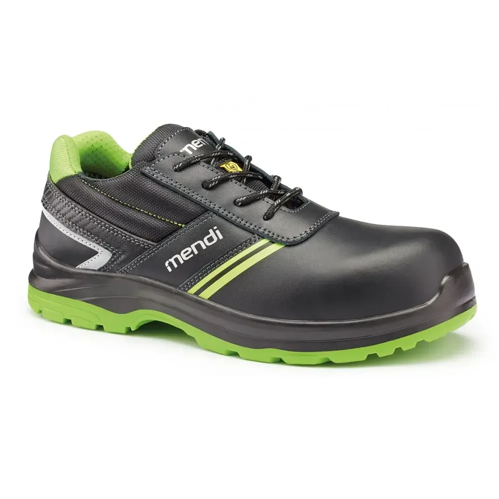 Los zapatos de seguridad cómodos y elegantes de la marca Mendi nos ofrece una clara apuesta en cuidar todos los detalles de su suela con unos grips antideslizantes y en zonas de mayor desgaste, amplios canales de evacuación, antiestático ESD y con absorción de energía, que da como resultado un calzado cómodo y muy antideslizante.