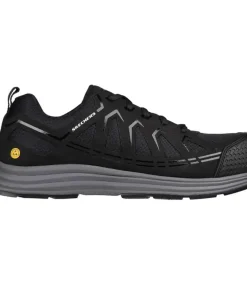Zapato de seguridad Skechers repelente a líquidos con protección NO metálica en puntera y plantilla antiperforación de fibra de carbono.
