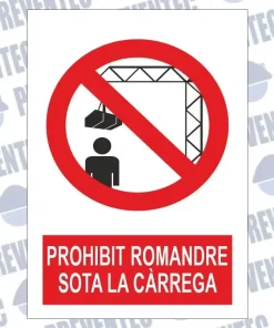 Senyal de prohibició: Prohibit romandre sota la càrrega