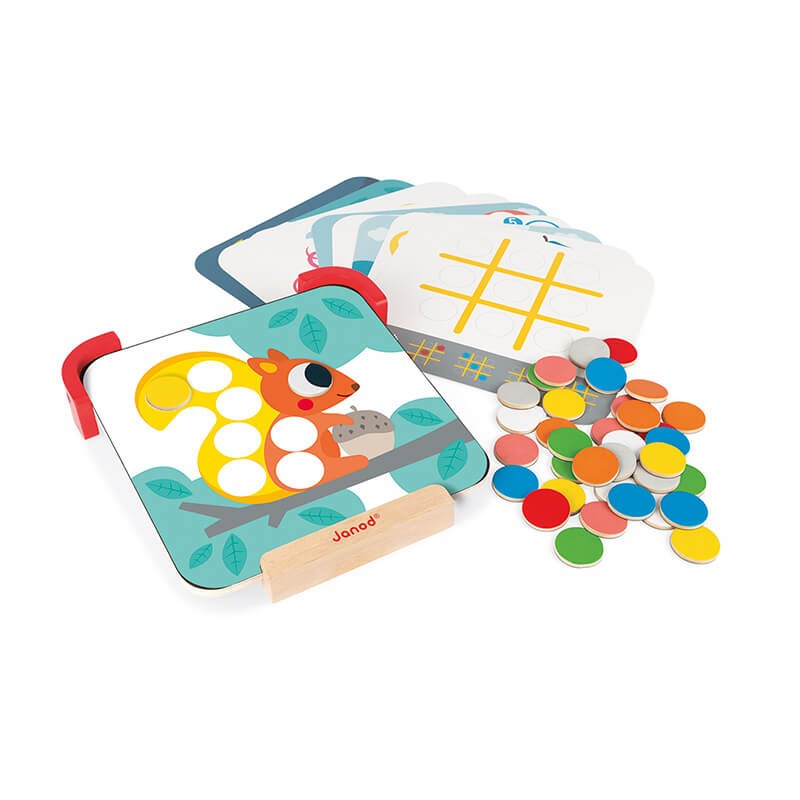 Con los 42 discos de colores y las 10 tarjetas reversibles con juegos y actividades, los pequeños se lo pasarán en grande.