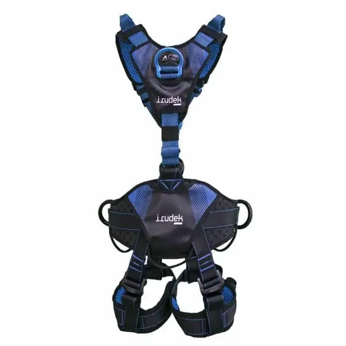 El arnés anticaídas Irudek Wind Blue 3 está catalogado como uno de los arneses premium de la marca y que destaca por su ligereza, su gran confort y su transpirabilidad con un diseño en «Y».